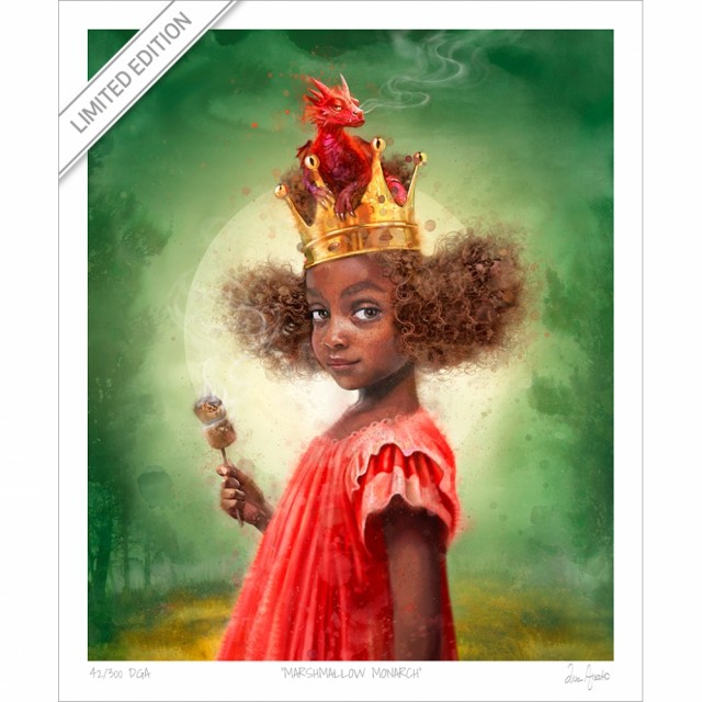This print is signed by, and produced as directed by, the artist Lisa Aisato. The artwork is printed in a limited edition as a giclée quality print of archival standard. The artist reserves the right to produce and sell posters and other non-archival standard representations of the same image.